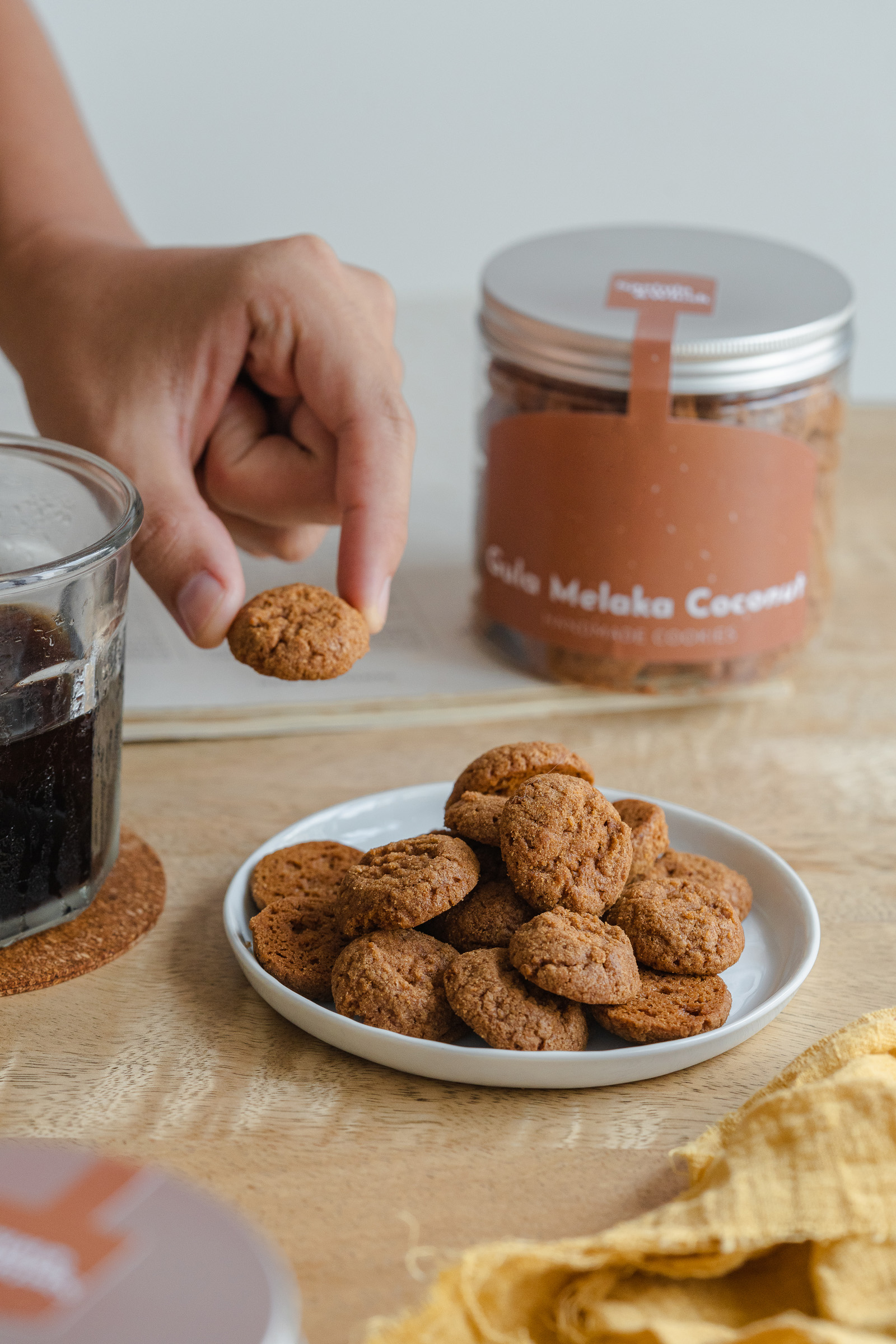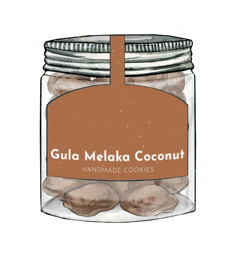 Ingredients: Wheat flour, butter, gula melaka (palm sugar), eggs, coconut, baking soda.